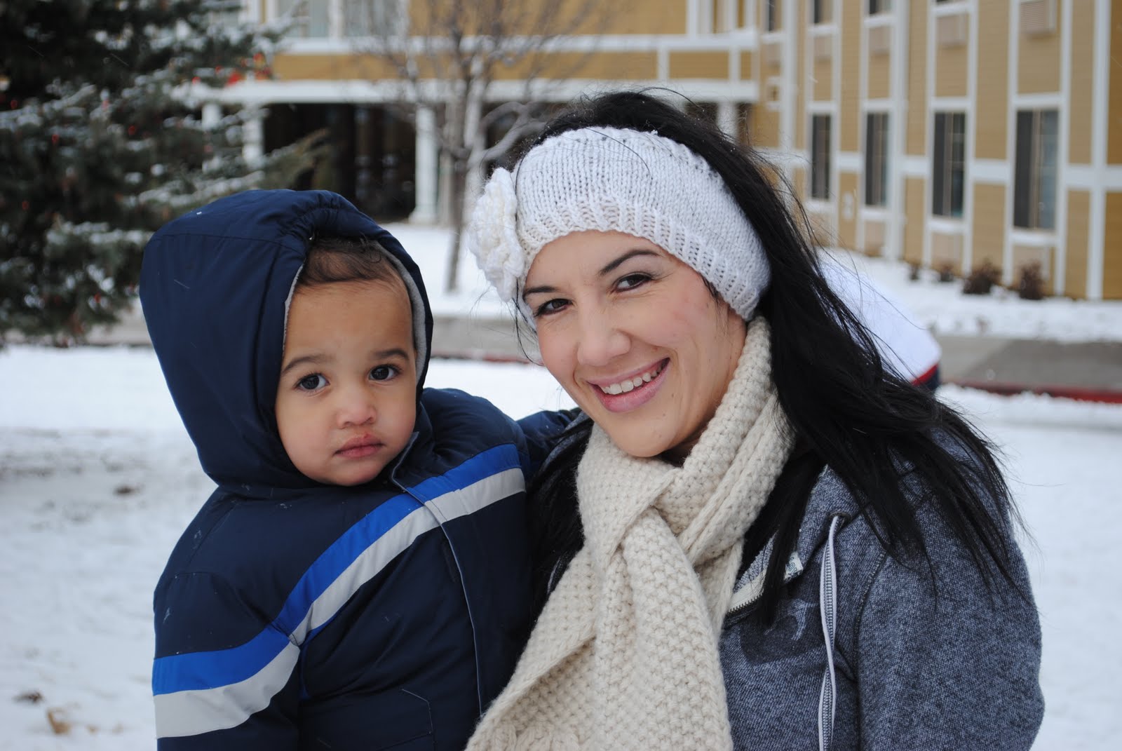 Today when we woke a fresh layer of snow covered everything and it was so pretty!!! We got up and headed out to do some sledding with Trey & Layla. After we {FROZE} & had enough we went to our usual breakfast spot we go to every year, and then headed over to Bearizona. We had never done this before when we have gone so it was SUPER NEAT to see. You drive thru the 1st half and then there is a part where you get out and walk...I figured since it was snowing pretty good we would only do the drive part, but Mark did go take Trey into the outside part for a good 20 minutes so Trey thoroughly enjoyed that--all he wanted was to be outside in the snow... Are they not the CUTEST thing ever??? The Johnson's & us Our own little marshmallow lol-- Albino Bison These wolves were literally touching our car Black bears playing Trey getting smashed by Daddy with a snowball lol Sleeping bear Baby wolf The snow storm made the drive home sooooo pretty!